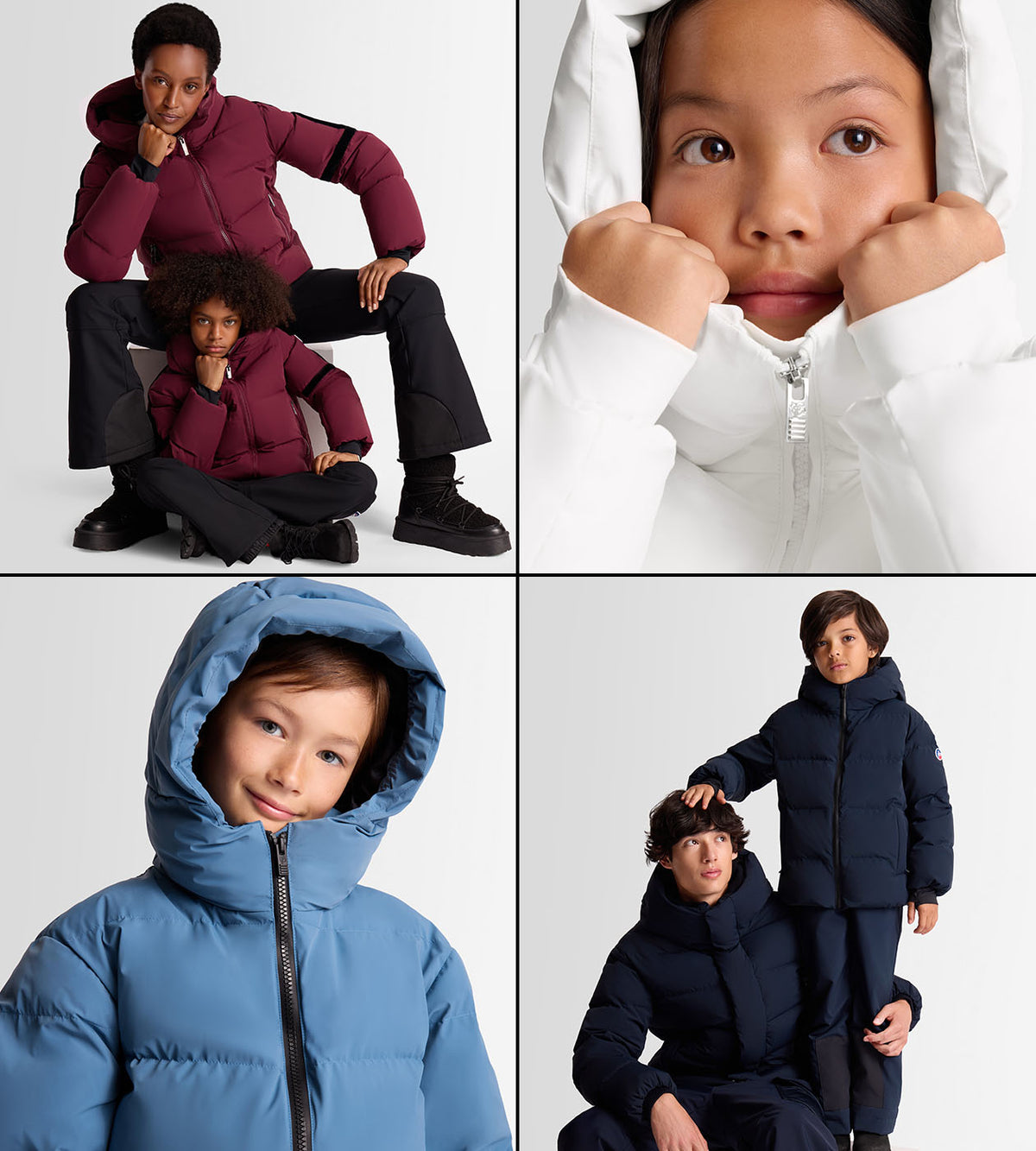 Ski jackets, down jackets, light jackets, and ski pants : as technical as they are refined, for unforgettable family moments.