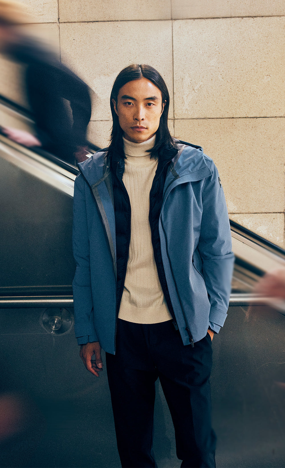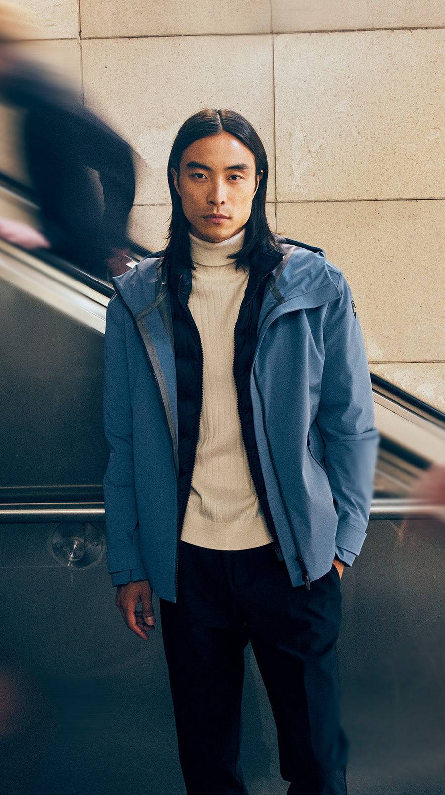 Technical, lightweight and protective, the 3-layer membrane acts like a second skin: windproof, water-repellent and breathable. The clean cuts, inspired by tailoring expertise, follow the body's contours without constricting it.