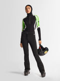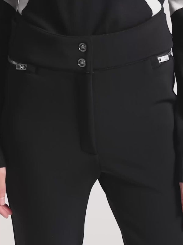 The Elancia ski pants has a resolutely contemporary, sporty-chic style that accentuates the silhouette and enhances the look. Made from stretchy, windproof softshell with fleece backing, it's thermally efficient. A women's ski wardrobe essential, pair it with a slim-fit ski jacket for a highly glamorous silhouette.