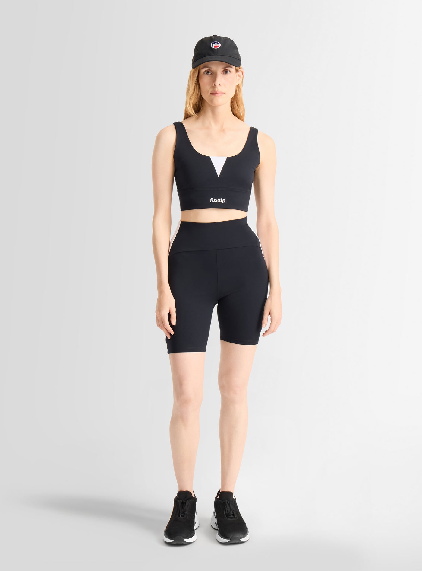 The Biarro cycling short stand out with their graphic design and technical features. Made from high-performance stretch jersey, they offer optimal comfort and freedom of movement. Adorned with a contrasting side stripe reminiscent of the iconic tapered pants, as well as the printed Fusalp logo, they exude a sporty and elegant look. Designed for a cohesive and dynamic silhouette, the Biarro leggings pair perfectly with the Biarro sports bra.