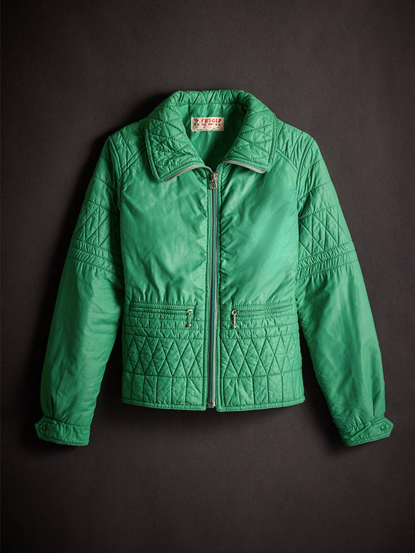 Cette veste au style emblématique des années 70, d’un vert flamboyant, fut achetée en 1970 dans la célèbre vallée de Chamonix. Possédée par Heidi puis par sa sœur et sa nièce, la veste a traversé les époques, apportant une touche d’authenticité et de souvenirs, dans le dressing d’une famille de skieurs invétérés.
