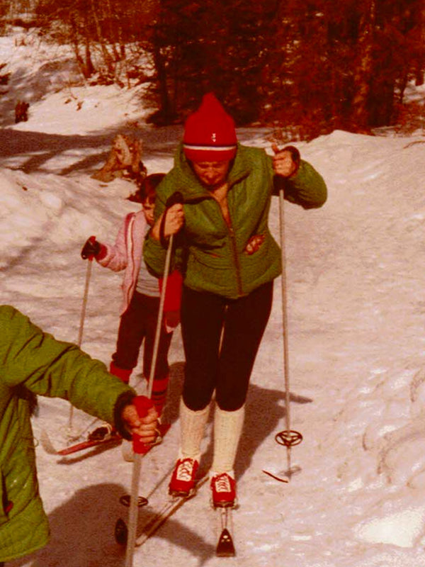 Retour au début des années 80, le désir d'une combinaison unique et élégante pour exercer sa discipline anime Christine. Nadine, modéliste chez Fusalp à l’époque, développe cette combinaison féminine, et Christine la porte sur le podium de la Coupe du Monde de ski acrobatique. En tant qu'étudiante en design de mode, c'était une confirmation du désir de Christine de faire le pont entre les mondes du sport et du textile.