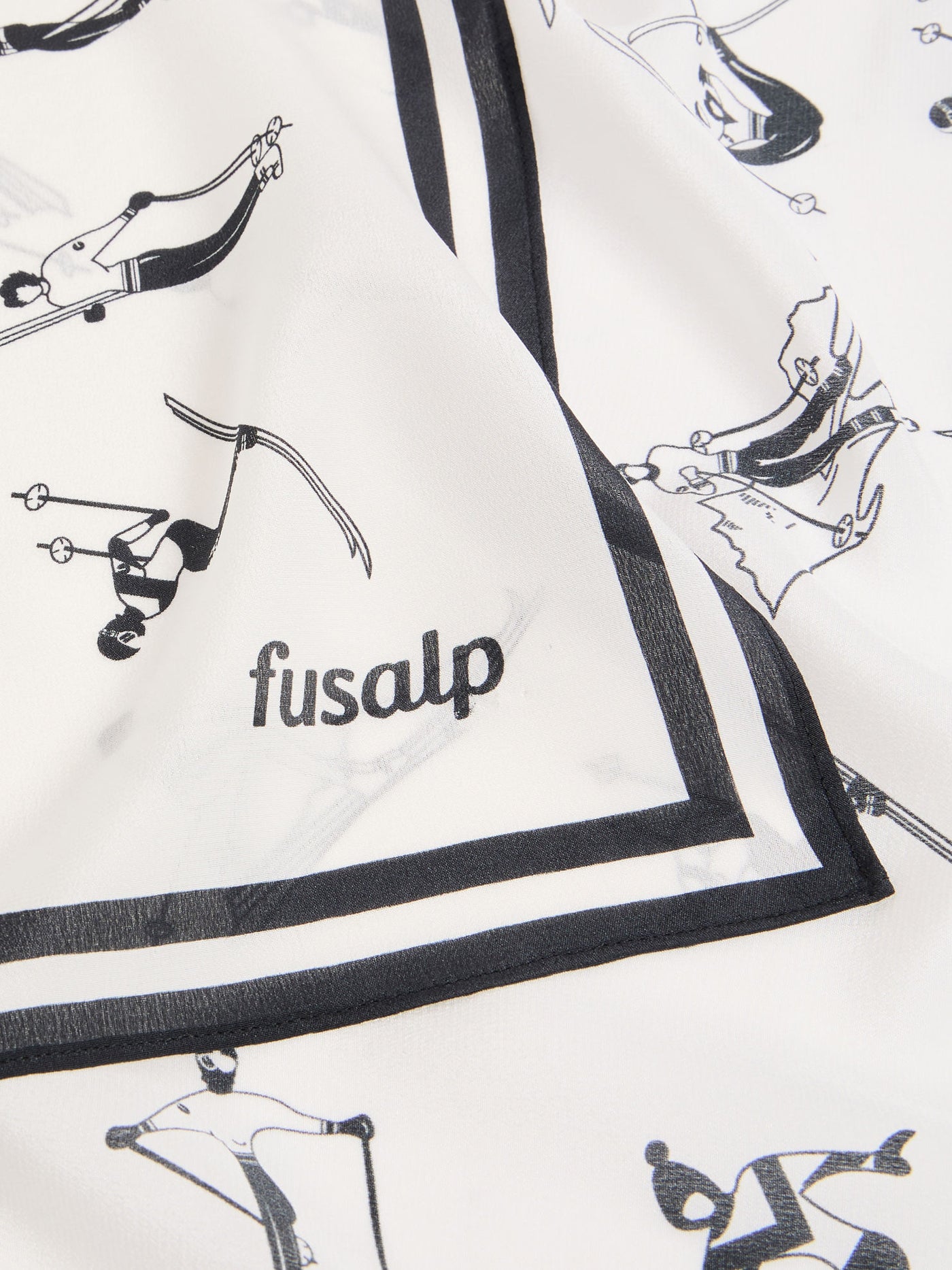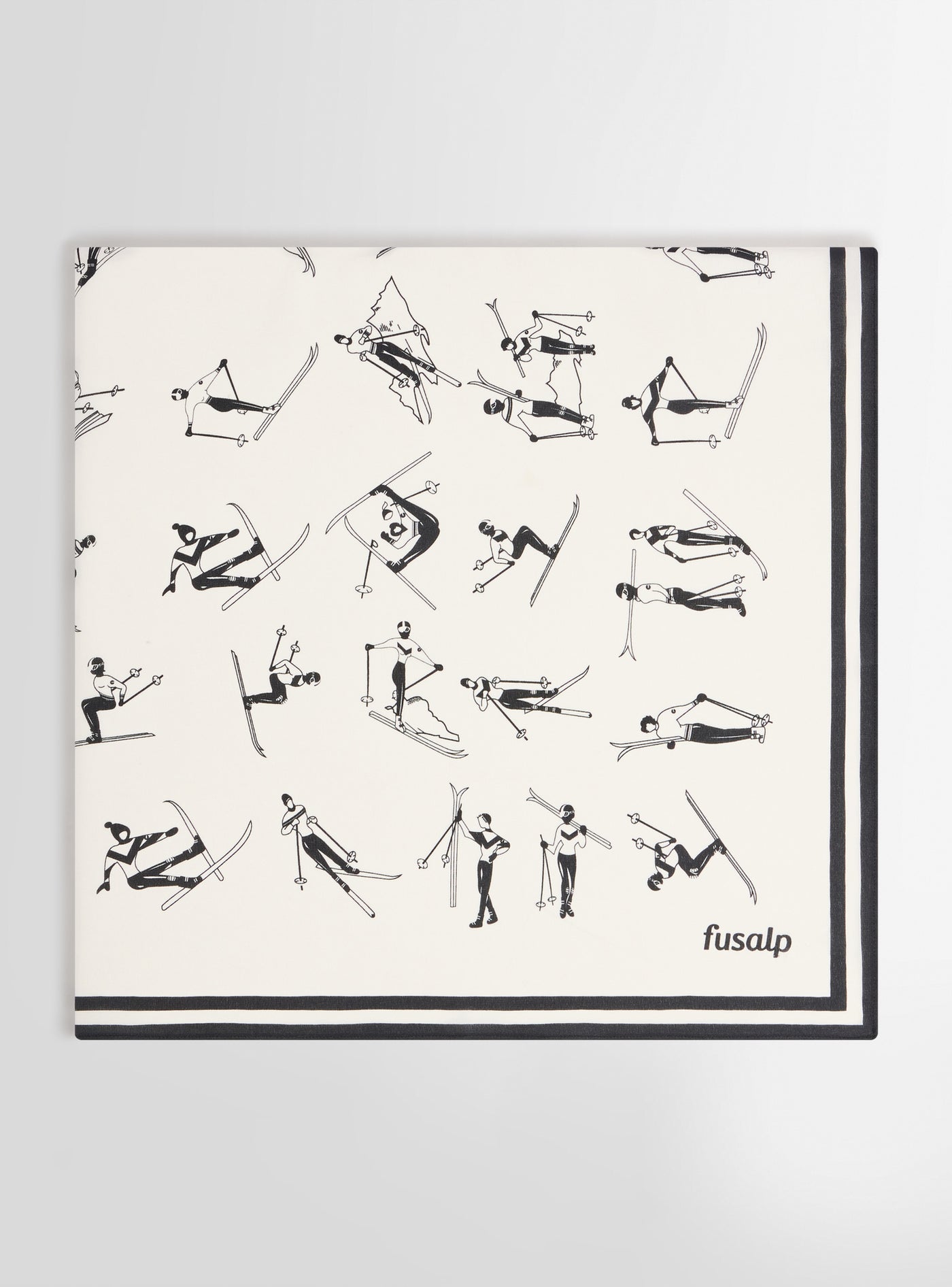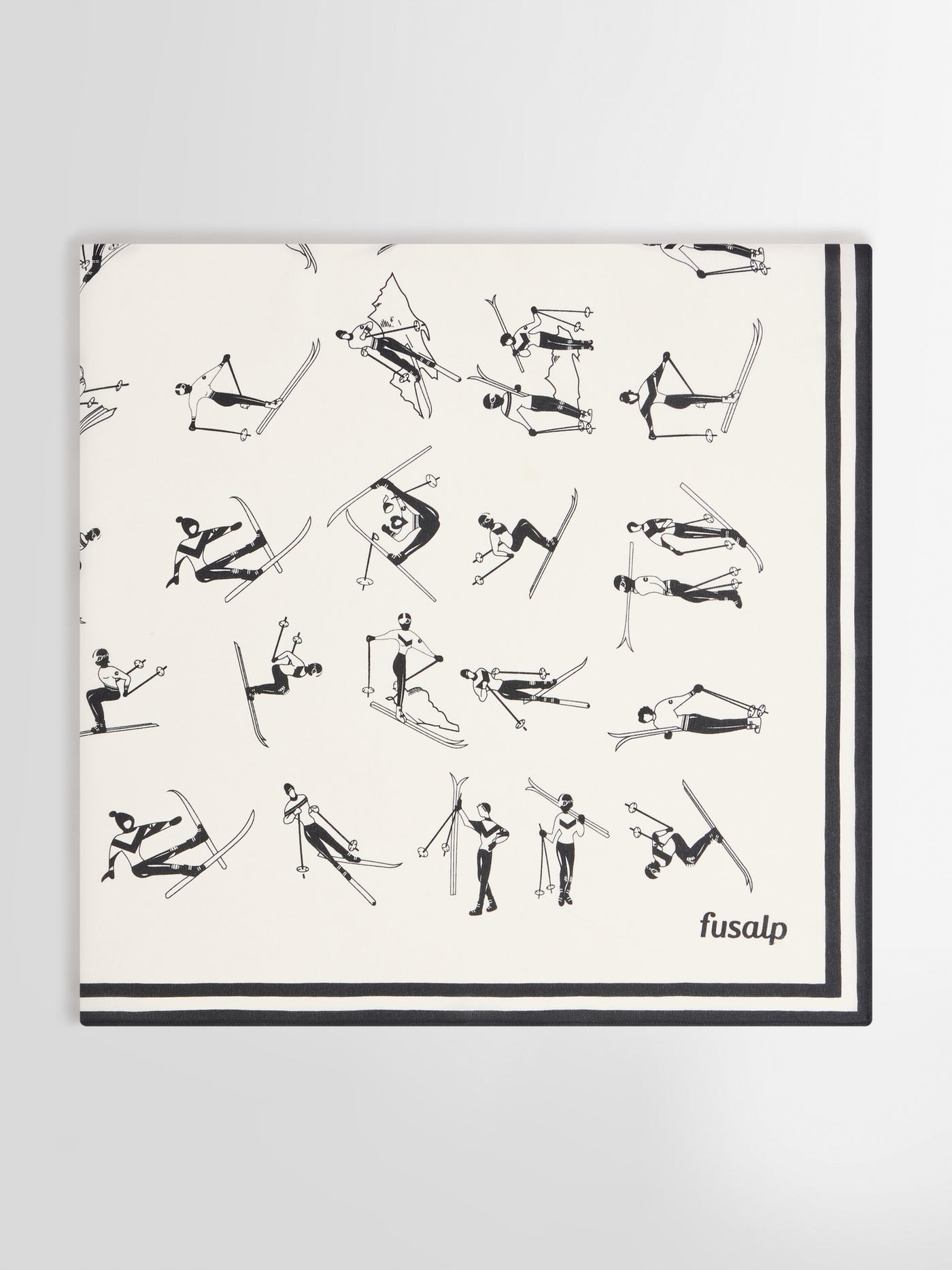 Le foulard Silk Scarf est confectionné en crêpe de chine et il est embelli avec un imprimé skieurs. Le carré rehaussera une tenue et il assure une touche de chaleur supplémentaire pour l’intersaison. Il pourra être noué de différentes façons, autour du cou, dans vos cheveux, ou à l’anse de votre sac à main.