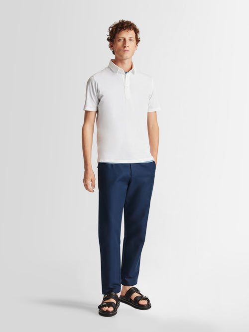 Le polo Germain réinterprète le modèle classique dans une version contemporaine et sophistiquée. Confectionné en coton et maille piquée légère, respirante et texturée, il est rehaussé d’un col chemise qui offre une belle tenue. Des fentes latérales au bas du vêtement, une patte de boutonnage et ses 3 boutons de nacre complètent le design moderne.