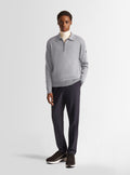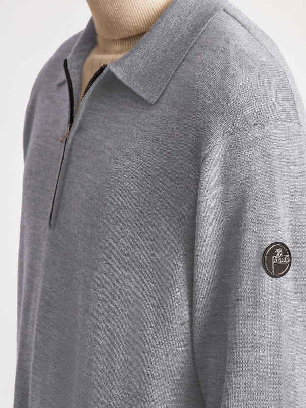 Le pull Clovis est un essentiel du vestiaire masculin citadin. Confectionné dans un jersey luxueux de laine et soie, le pull se distingue par son col polo zippé et ses détails côtelés aux poignets et bas de pull. Ce modèle intemporel promet une allure élégante et sophistiquée, et se porte facilement seul ou en layering.